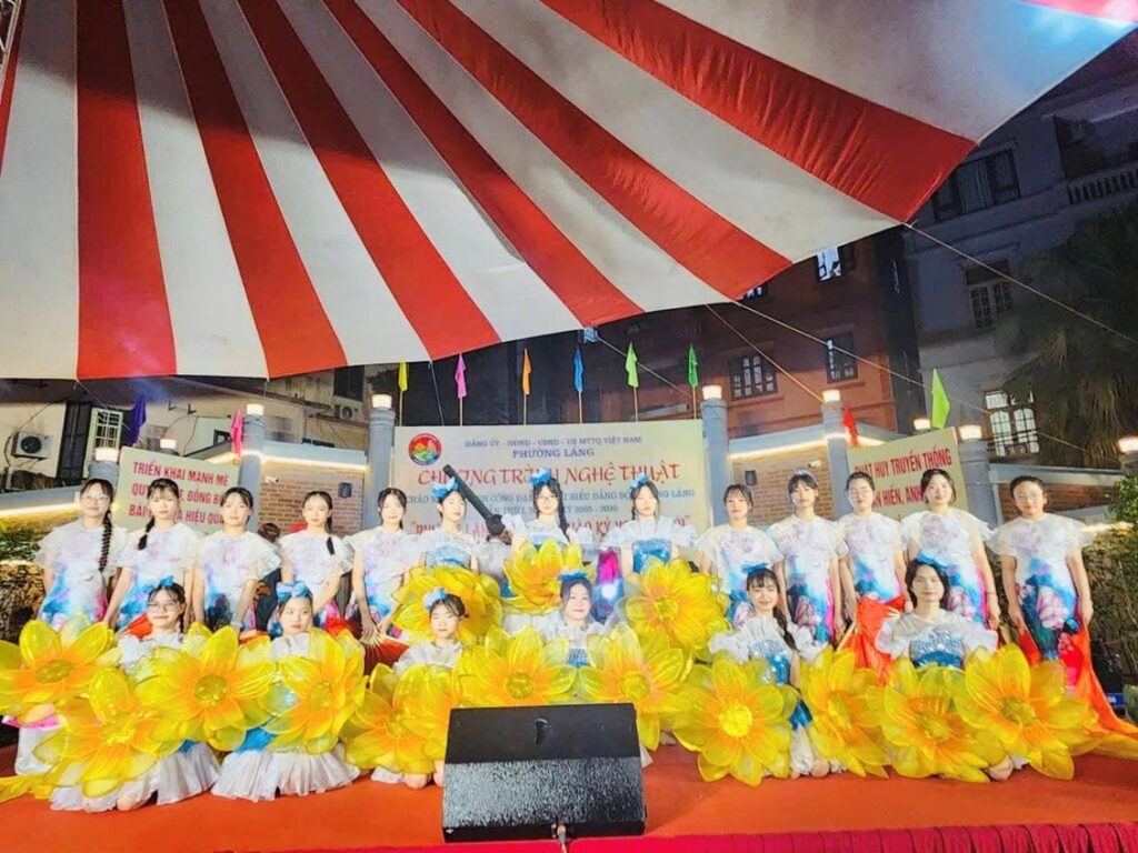 Học sinh trường THCS Láng Thượng biểu diễn văn nghệ chúc mừng thành công đại hội Đảng bộ phường Láng lần thứ I
